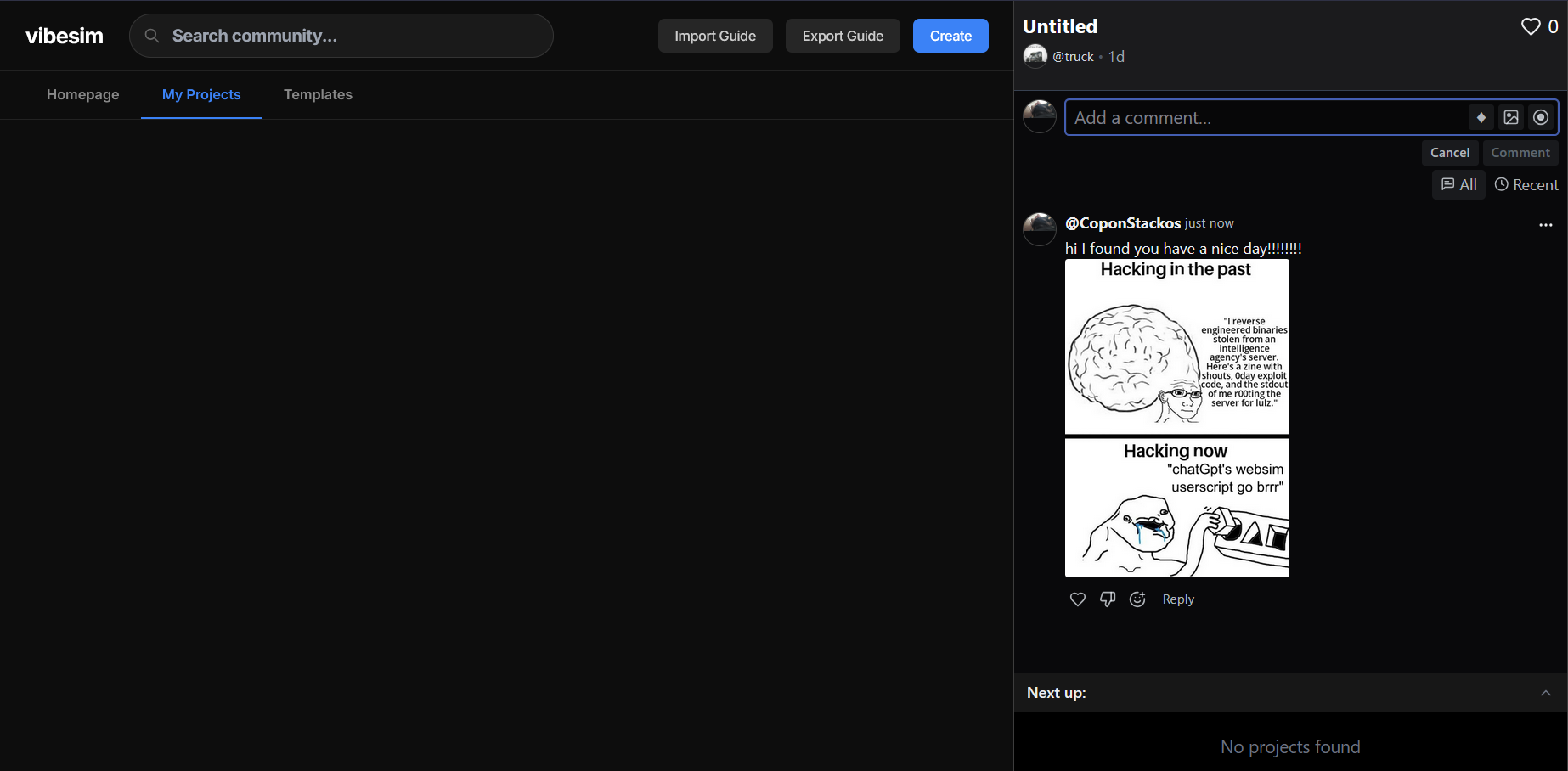 banned the skid and decided to comment on one of his proyects cuz I could not avoid doing that.